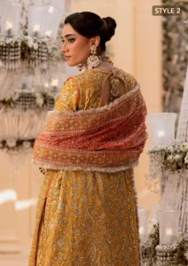 A refined and elegant piece from AIK Atelier’s Wedding Festive Collection, designed for women who appreciate timeless South Asian craftsmanship with a modern, graceful silhouette. This ensemble features intricate detailing, rich textures, and a regal presence perfect for weddings, formal events, and festive occasions.